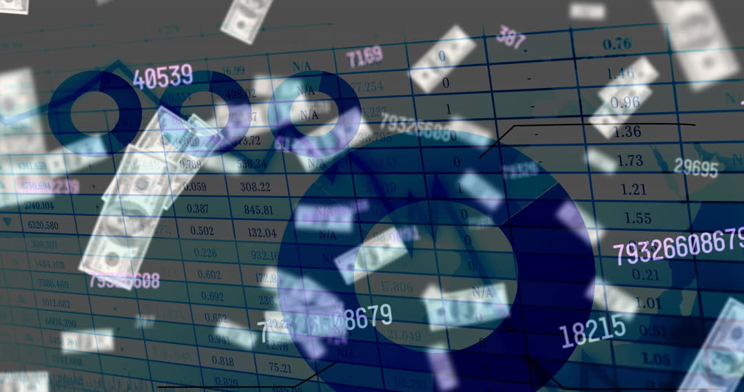 - Dynamic Financial Symbols and Falling Currency Over Stat Charts