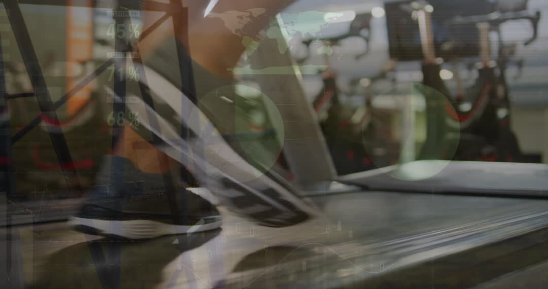 Visualize fitness data and activity with this dynamic treadmill scene, perfect for health and sports promotions, illustrating workout routines or gym technology advancements.