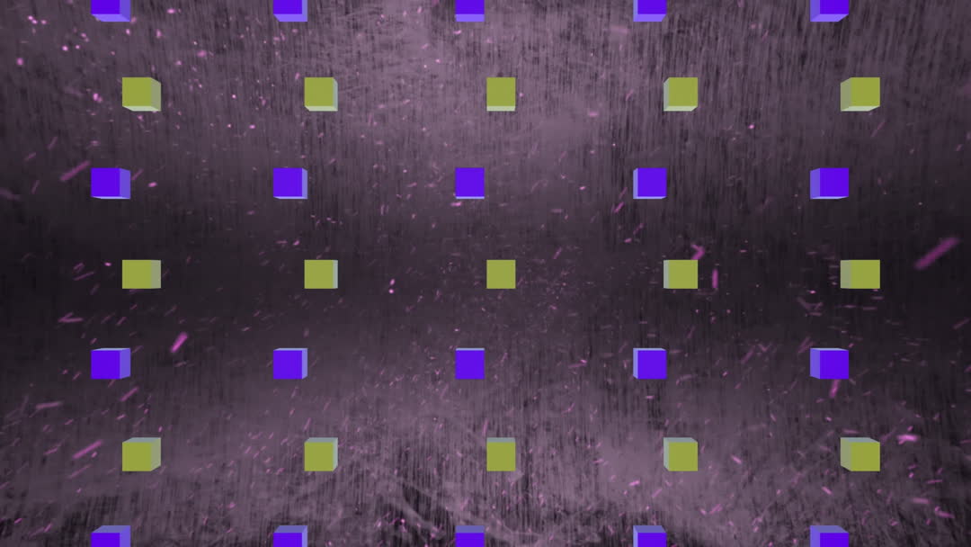 Features colorful cubes arranged on a vibrant purple background, enhanced with floating sparkles. Ideal for digital art projects, animations, and adding a modern abstract vibe to presentations or websites.