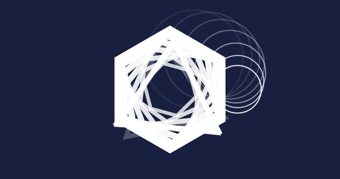Intricate geometric shapes animate on a dark blue background, creating an abstract and futuristic visual appeal. Suitable for use in design projects, digital art showcases, or tech-themed presentations needing a stylish and modern aesthetic. The seamless dynamic pattern can be effectively utilized for digital backgrounds, website headers, or motion graphics.
