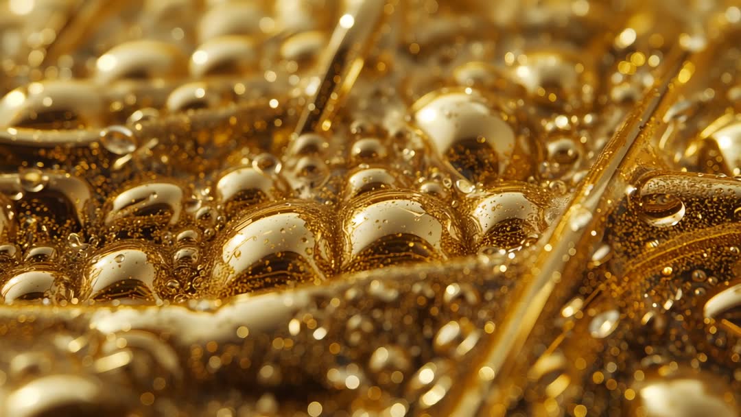 AI Generated Image. This video captures golden bubbles in motion, presenting a luxurious and abstract depiction of effervescent liquid surfaces. The dynamic play of light highlights the intricate interplay of bubbles merging and shifting across vibrant golden textures. Ideal for use in luxury product marketing, digital art backgrounds, and creative projects emphasizing fluidity and luminosity.