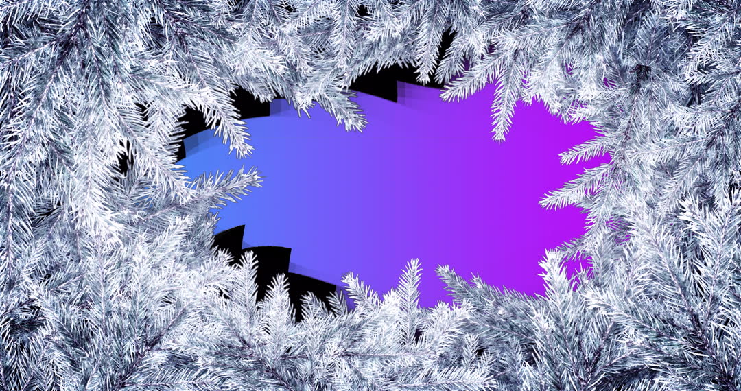 Vibrant wave with blue to purple gradients is encased by frosted branches, suggesting a winter or holiday feel. Great for holiday promotions, social media graphics, festive decorations, or futuristic themes.