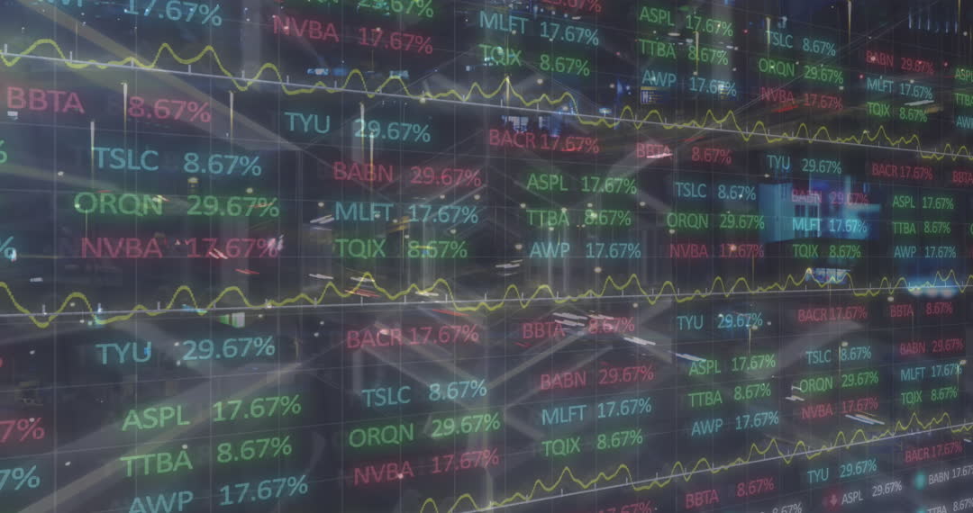 Depicts vibrant digital graphs and numeric data radiating on a dark electronic screen, symbolic of rapid data analysis and global economics. Useful for illustrating modern financial systems, stock trading, and the integration of technology in business intelligence.