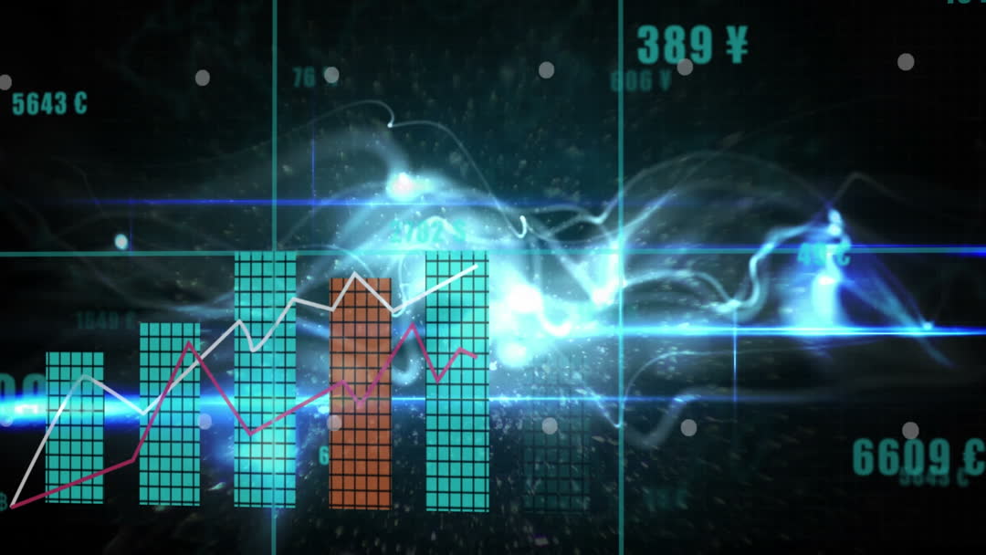 Dynamic Graphs with Currency Symbols on Abstract Digital Background Video