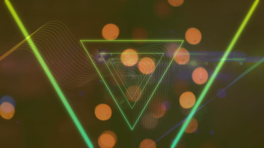 - Dynamic Green Neon Triangles with Floating Orange Circles