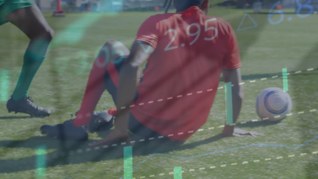 Combination of soccer players and financial data representing the intersection of sports and economic trends. Suitable for illustrating articles on sports economy, financial sport metrics, sponsorship impact on sports, and case studies in sports management.