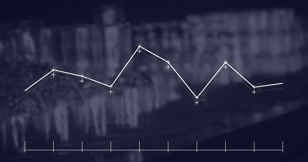 This video depicts a dynamic line graph overlay on indistinct coffee makers at a coffee shop. This visualization conveys themes of financial progress and business analytics, perfect for illustrating reports or presentations related to the cafe or restaurant industry. Suitable for use in business blogs, proposals, market research documents, and other contexts where visuals of chart data analysis alongside practical business settings are beneficial.