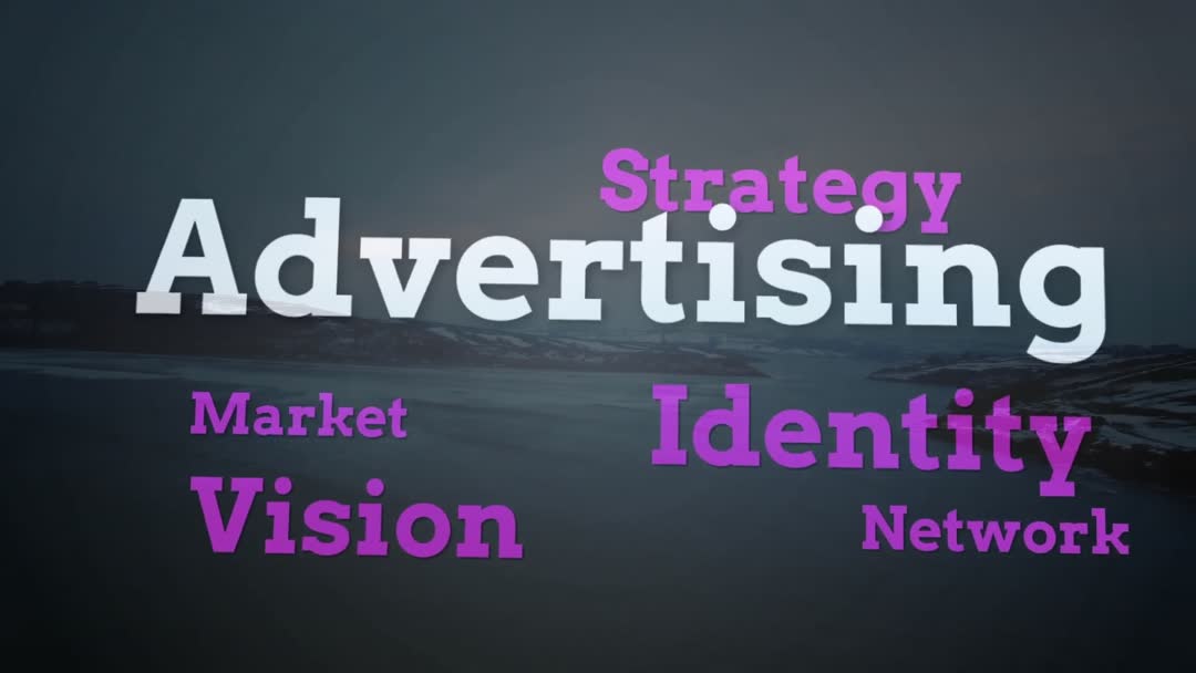 Dynamic Marketing Strategy Words Overlay on Scenic Landscape Video