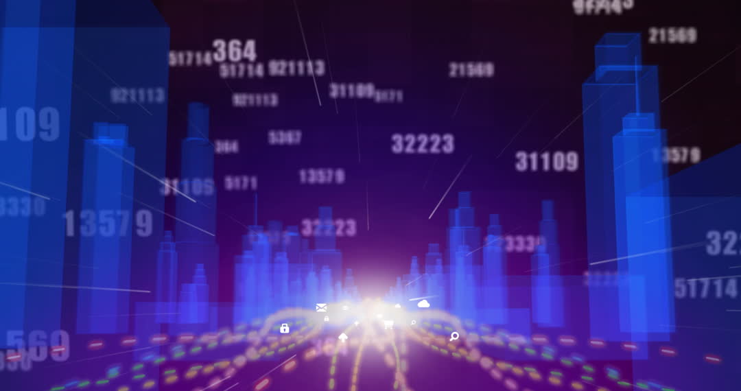 Dynamic Metaverse City with Fast-Moving Data Particles Video