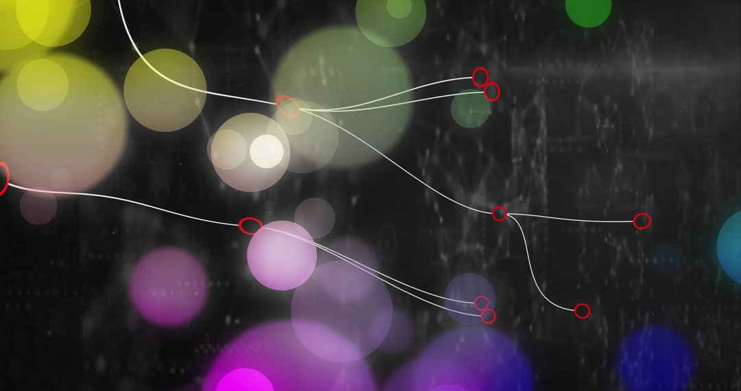 This abstract visual illustrates interconnected digital networks featuring glowing orbs set against a dark background. Smooth lines with red ring nodes express concepts of connectivity and technological advancement. Ideal for use in technology presentations, digital marketing materials, or innovation-related blog posts, the scene provides a creative and modern aesthetic.