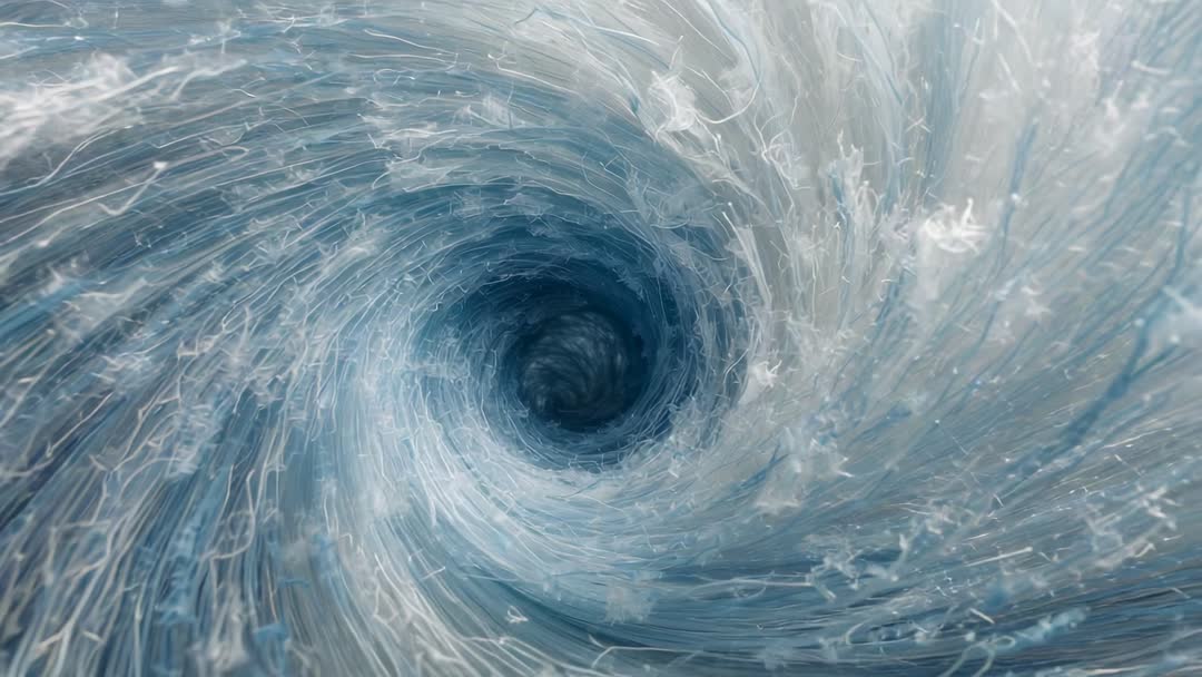 AI Generated Image. Showing spinning ocean whirlpool pulling foamy currents into dark central vortex, creating hypnotic spiral motion. Featuring streaking water trails, layered textures, and contrast between deep blue center and pale foam, producing cinematic timelapse aesthetic. Offering versatile footage for environmental documentaries, weather segments, visual effects reference, or atmospheric background for broadcast and social media. Pairing well with ambient sound design, dramatic music, or data overlays for scientific visualizations. Providing high-resolution frames suitable for looping motion graphics, website hero banners, title sequences, and gallery installations.