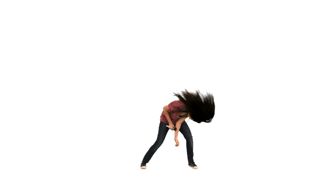 Image depicts a woman mid-performance enjoying music. Her animated presence makes it ideal for themes related to lively concerts, musical expression, and energetic dance movements. Suitable for advertising music events, illustrating blog posts about performing arts, and enhancing creative designs related to entertainment.