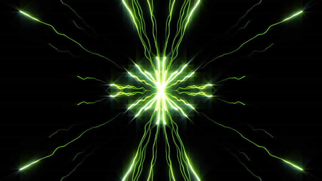Glowing green light streaks emanate from the center against a dark background, creating a dynamic and electric feel. Suitable for technology, digital art, sci-fi themes, backgrounds for design projects, or website headers seeking a modern and energetic edge.