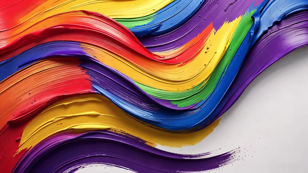 AI Generated Image. Bold rainbow acrylic strokes show exquisite texture and color on white canvas. This vivid, abstract presentation captures the fluidity and creativity expressing dynamic energy. Ideal for art blogs, creative projects, marketing materials, or showcasing vibrancy in an artistic context.