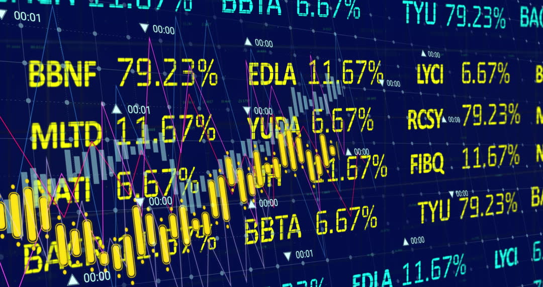 This display features animated ticker symbols and fluctuating stock graphs against a dark background, capturing the essence of modern financial markets and investments. Ideal for illustrating concepts related to finance, stock trading, digital finance innovations, or for presentations on economic trends and global business behavior.