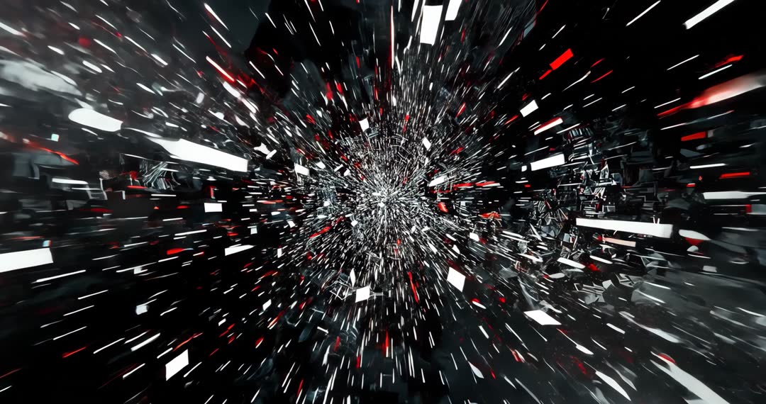 AI Generated Image. This dynamic visual captures shards exploding outward in a digital void, enhanced by striking red highlights, suggesting a futuristic interaction with technology. Ideal for a tech-based video, opening sequences, or sci-fi projects, highlighting themes of speed, innovation, and the digital landscape.