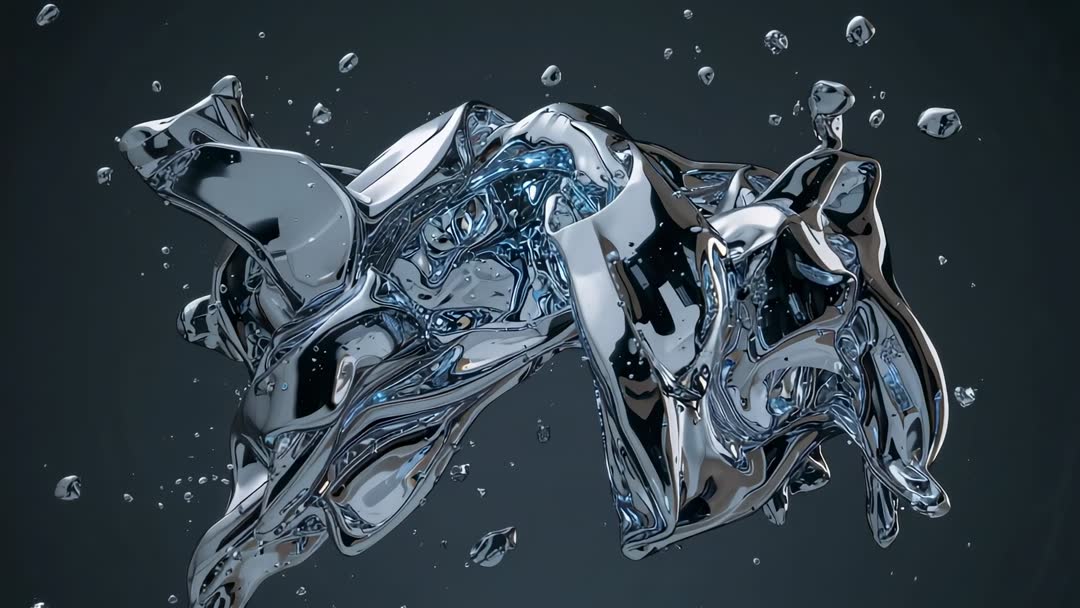 - Dynamic Silver Liquid Form in Futuristic Movement