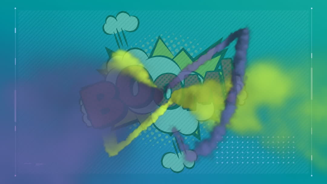 Colorful animation featuring dynamic smoke trails overlaying a comic-style 'Boom' text. Suitable for use in digital art projects, graphic design backgrounds, marketing materials, and creative storytelling visuals emphasizing comic or dynamic themes.