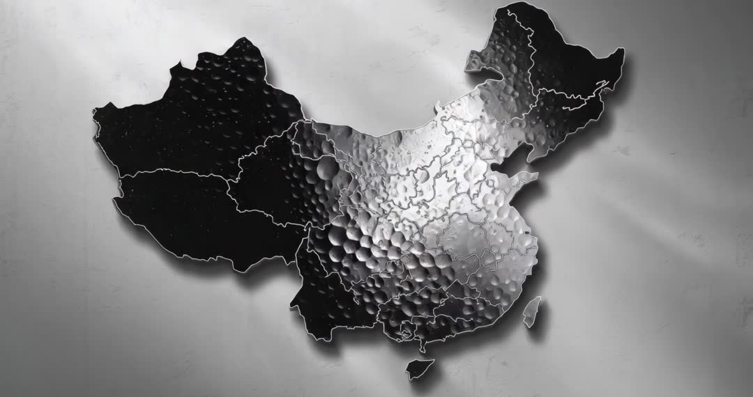 AI Generated Image. A 3D representation of China's map glistens with moving specular highlights on a polished metallic surface, highlighting various provinces. This deeply textured and visually dynamic video can be utilized in presentations, educational resources, or promotional content related to geography, technology, and industrial development. Perfect for enhancing visual interest in projects involving global politics, economy, or geographic design.