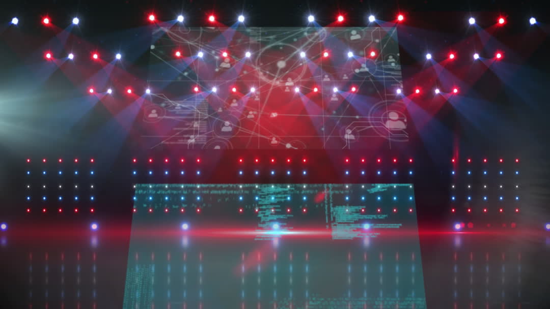 Dynamic Stage with Digital Network Projections and Red Lights Video