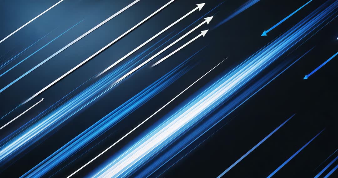 AI Generated Image. The video showcases animated diagonal lines and arrows in blue, streaming against a dark navy background, creating a dynamic and futuristic visual effect. Ideal for projects related to technology, AI innovation, data visualization, sci-fi themes, digital advertisements, presentations focusing on forward-thinking and innovation. The use of cyan arrows enhances the sense of speed and movement, making it perfect for content emphasizing progress and advanced technological concepts.