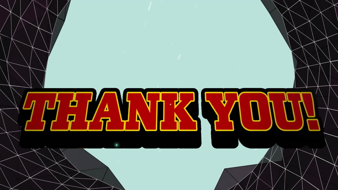 This is a vibrant and engaging thank you animation featuring bold 'THANK YOU!' text over a dynamic 3D tunnel effect. The background adds a sense of depth and movement, reminiscent of video game graphics, making it ideal for digital interfaces or entertainment content. This visual can be used in presentations, virtual events, or social media to express appreciation effectively.