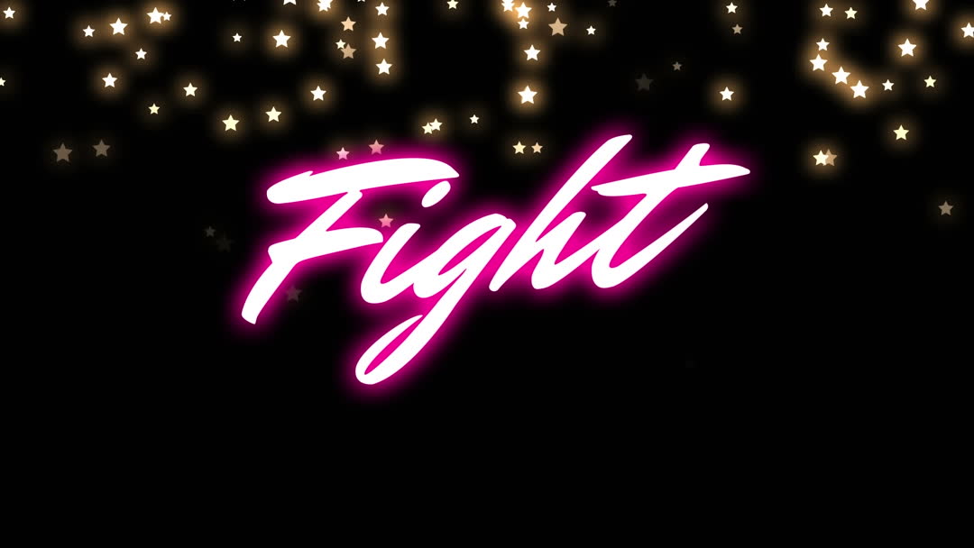 Pink handwritten 'Fight' text stands out against a star-dotted black background, evoking a sense of energy and action. Suitable for use in motivational digital graphics, social media campaigns encouraging resilience, or as an intriguing backdrop for enticing creative projects.