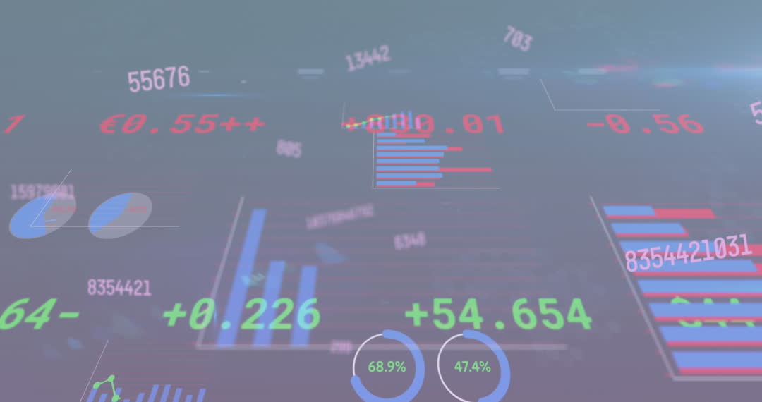 Dynamic visualization depicts rapidly changing numbers and statistical graphs, symbolizing real-time data processing in the stock market. Serves as an ideal representation for themes related to global business, financial technology, and economic analysis. Perfectly suited for illustrating articles on investment strategies, data visualization techniques, and worldwide market behaviors.