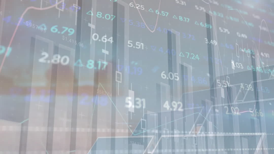 Abstract animation featuring various stock market graphs, showcasing fluctuating numerical data against a modern digital background. Ideal for presentations, financial news, investor briefings, or conferences focused on technology and finance sectors.