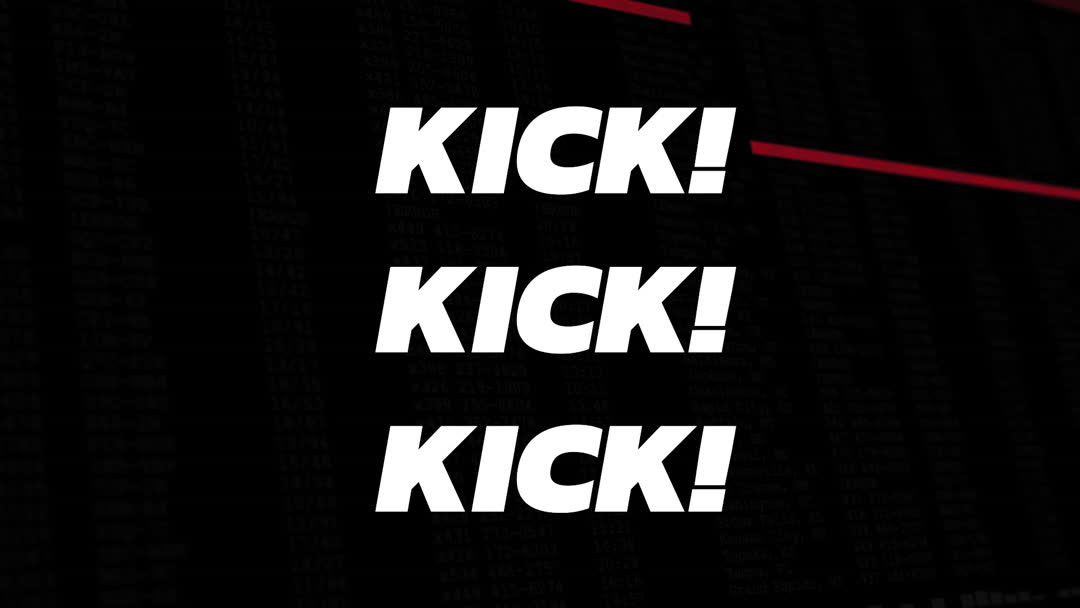 Three repeating bold 'KICK!' texts animate with a stylish backdrop of moving lines, creating an energetic visual effect. This design can be used in digital media campaigns, social media posts, or presentations to convey action, motion, or impact, attracting and engaging viewers.