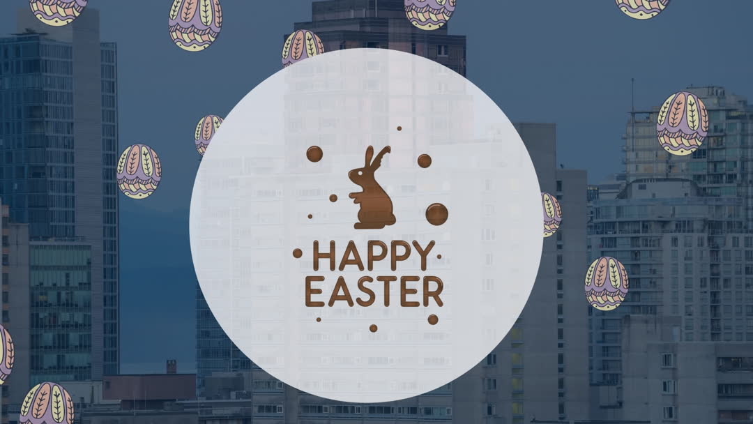 Easter Celebrations in Urban Setting with Abstract Design Overlay Video