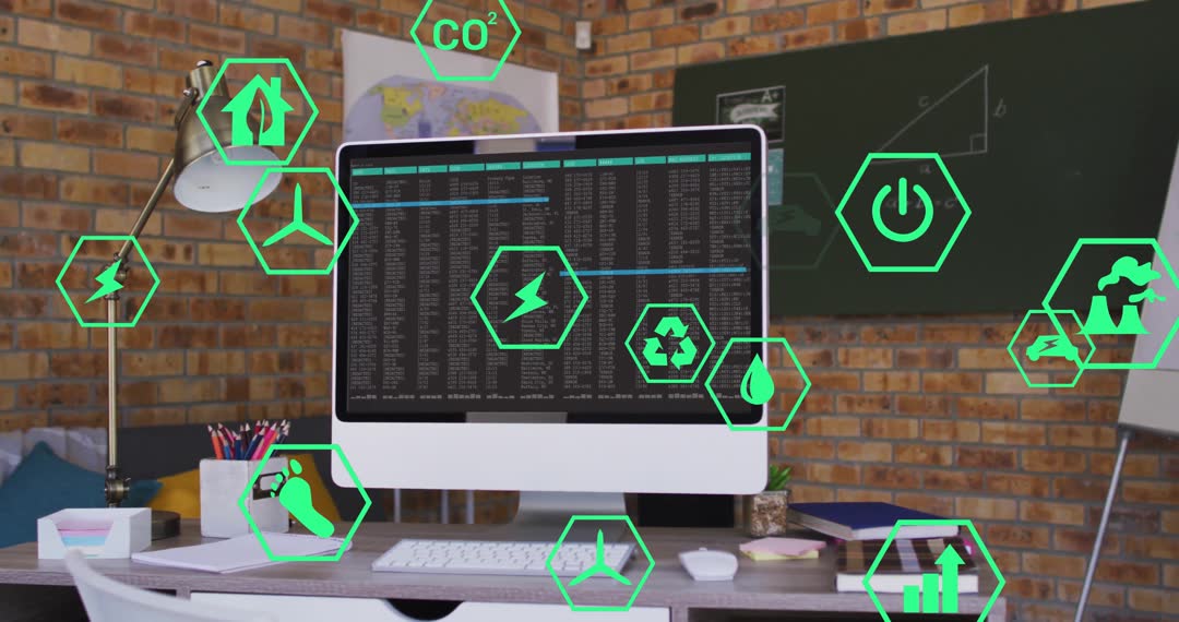Eco-Friendly Digital Workspace Highlighting Energy Metrics Video