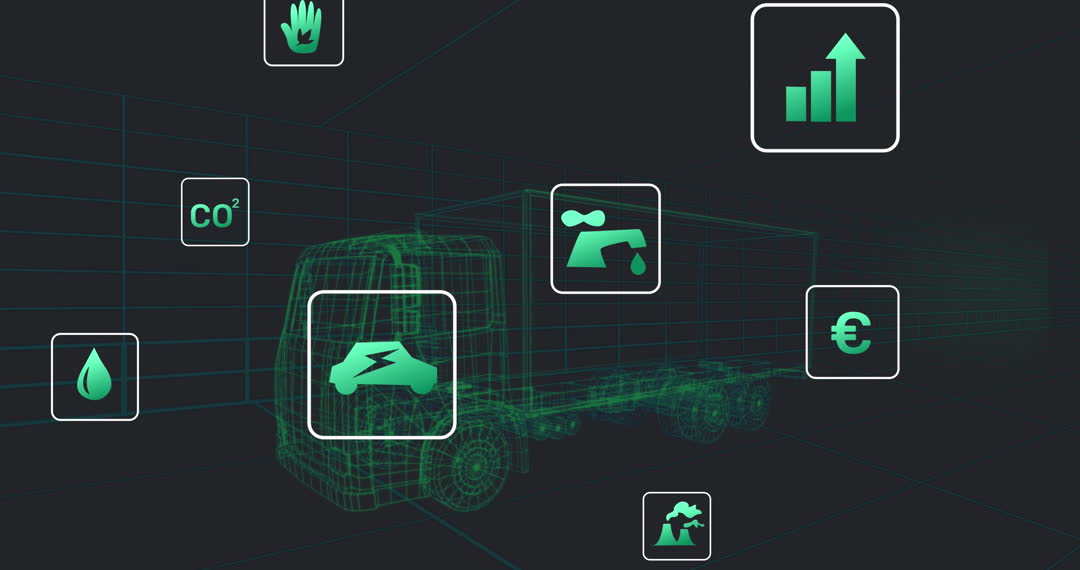 Animation depicts integration of eco-friendly concepts in transport innovation. Highlights like electric vehicles and green energy emphasize sustainable logistics. This visual is ideal for content focusing on environmental consciousness in modern transportation technology or innovative solutions moving towards a sustainable future.