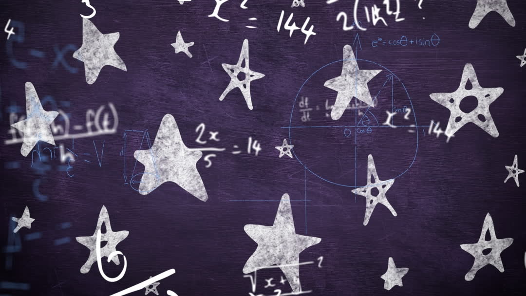 Illustration depicts chalkboard with stars and mathematical equations, ideal for educational materials, science projects, classroom posters, or online resources focused on creative learning environments.