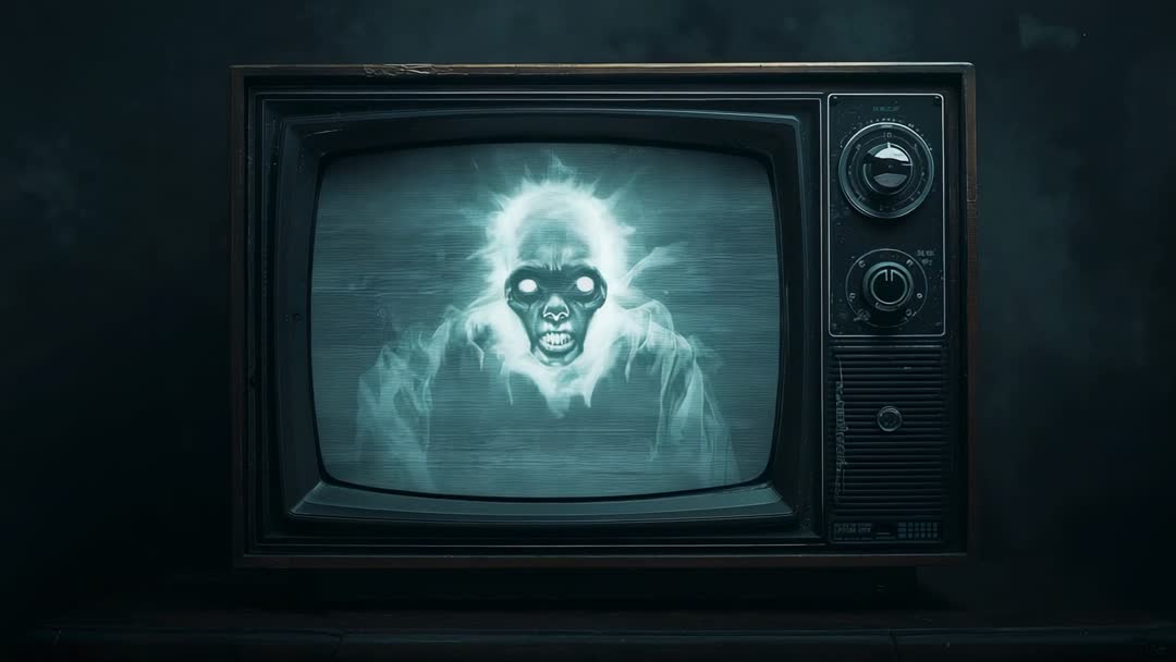 - Eerie Ghost Face Flickering on Retro CRT Television