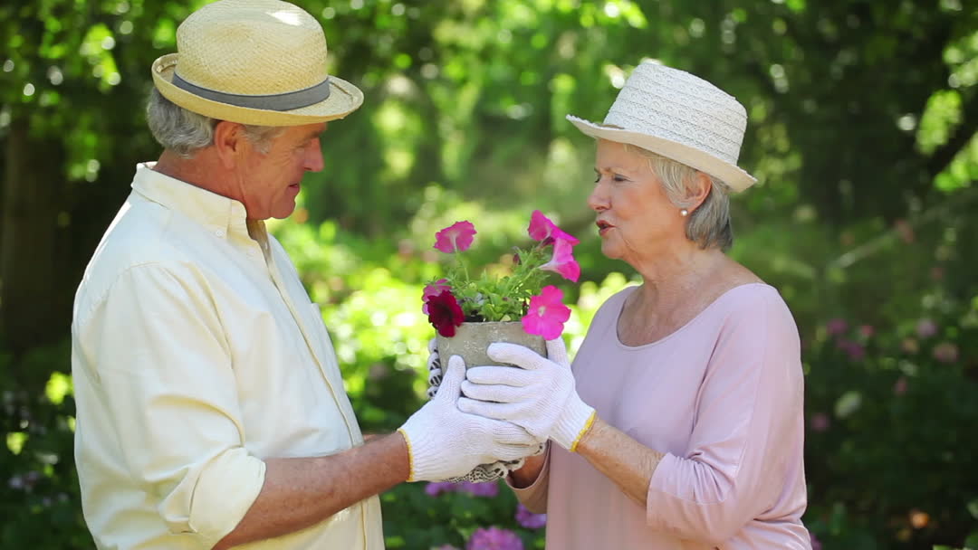 - Elderly Couple Enjoying Gardening with Lush Greenery