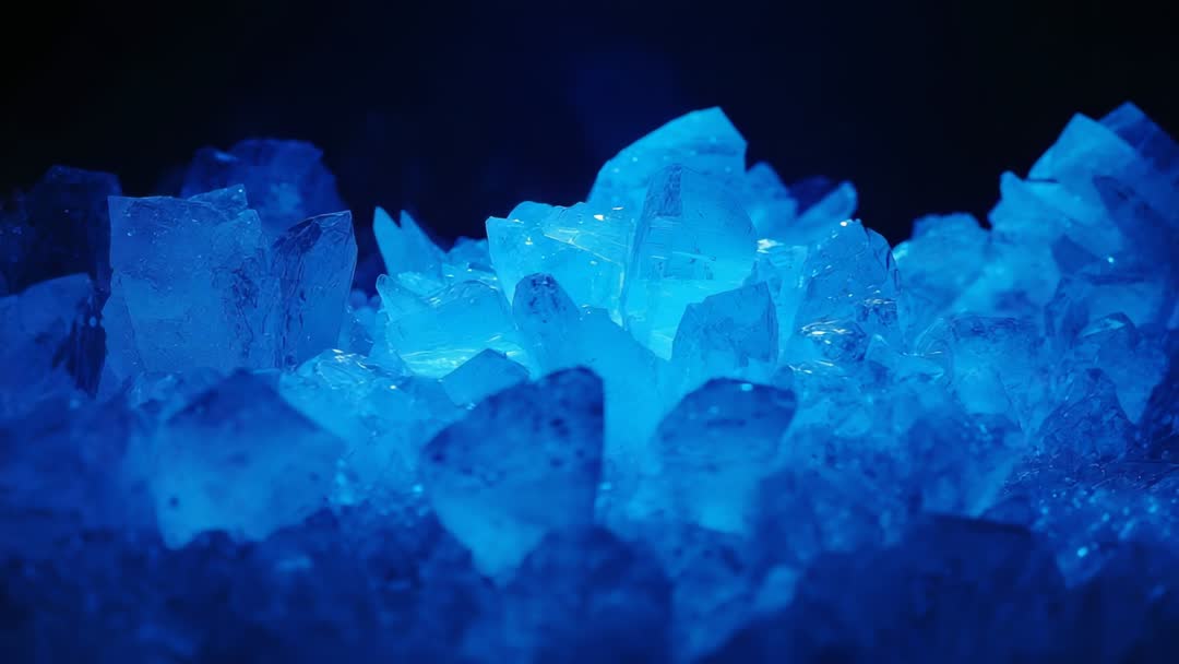 AI Generated Image. Crystals radiate electric blue light, displaying their translucent nature and intricate facets in immersive effects. Achieving sci-fi allure, video brings forth abstract thematic visuals perfect for video art projects, electronic dance backgrounds or as loops in video installations and tech-centered presentations.