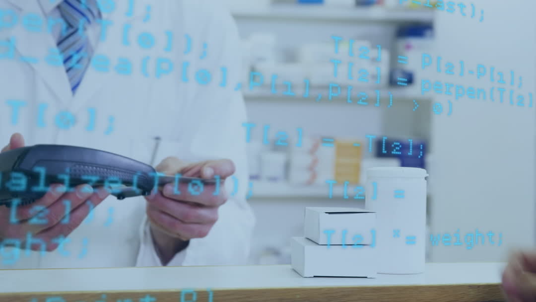 Electronic Payment at Pharmacy with Data Visualization Overlay Video