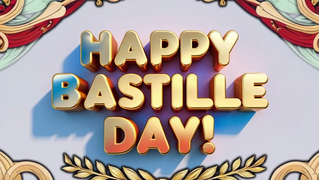 Elegant 3D Happy Bastille Day Greeting with Vintage Accents Video