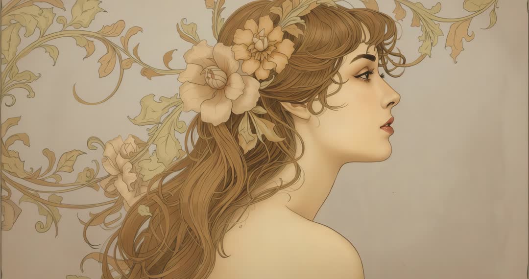 - Elegant Art Nouveau Style Floral Profile Portrait