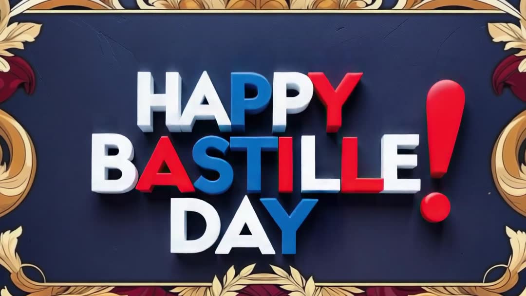 - Elegant Bastille Day Greeting with 3D Typography on Blue