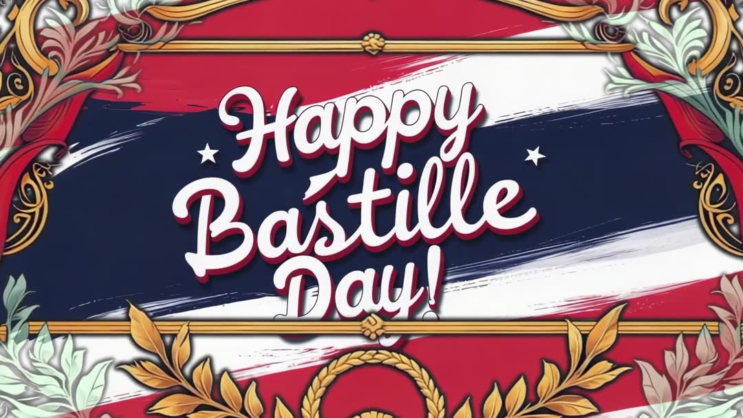 Elegant Bastille Day Greeting with Gold and Tricolor Theme Video