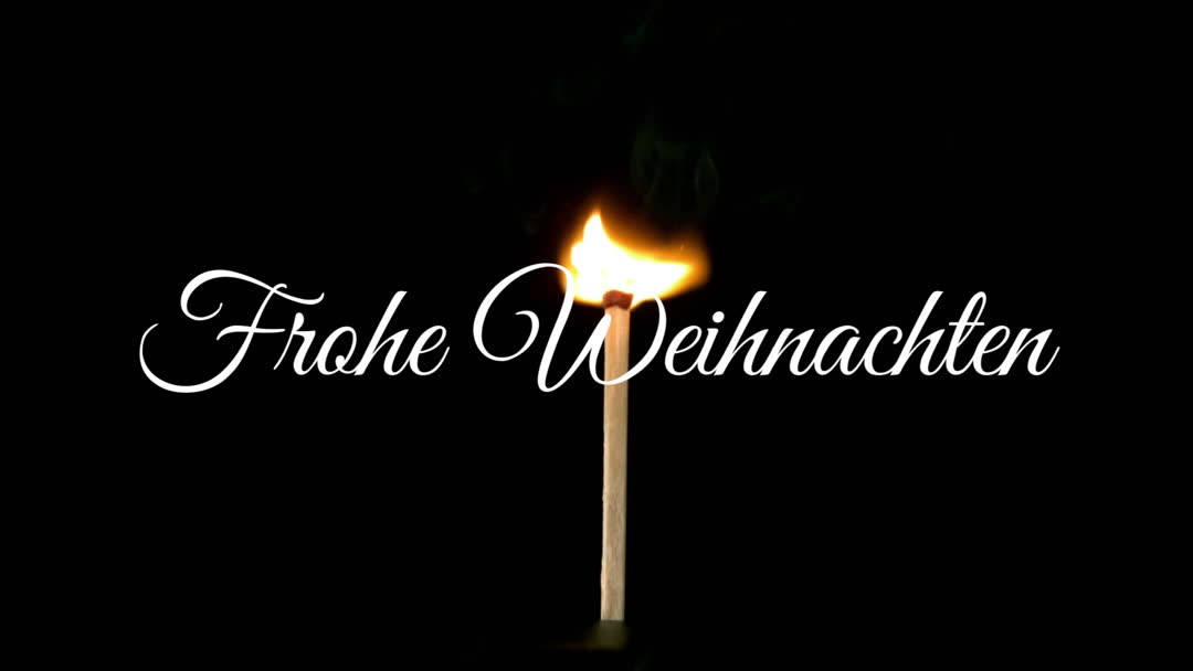 Lit match with glowing flame symbolizes warmth and festivity. 'Frohe Weihnachten' text elegantly represents Christmas season traditions. Ideal for holiday cards, festive social media posts, or digital greetings featuring a serene and warm atmosphere.