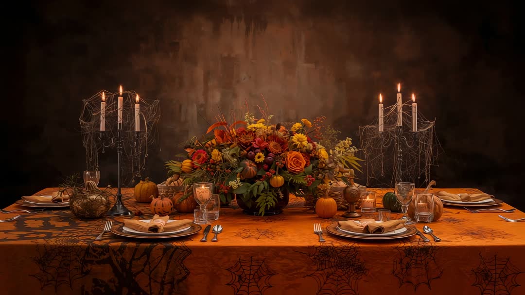 - Elegant Halloween Dining Table with Candles and Pumpkins