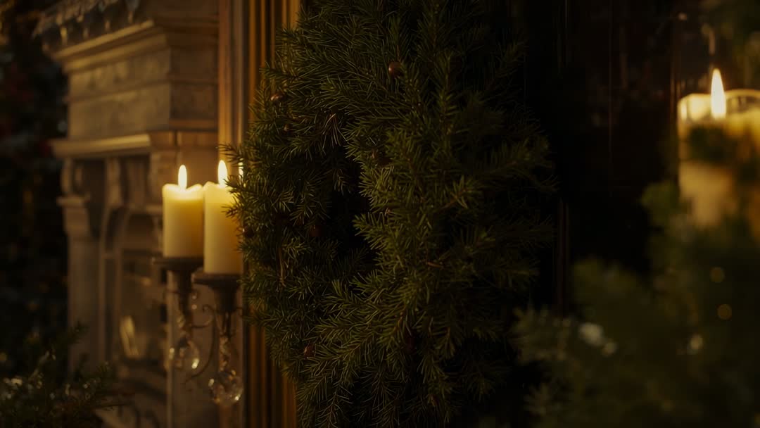 Elegant Holiday Evergreen Wreath with Glowing Candles Video