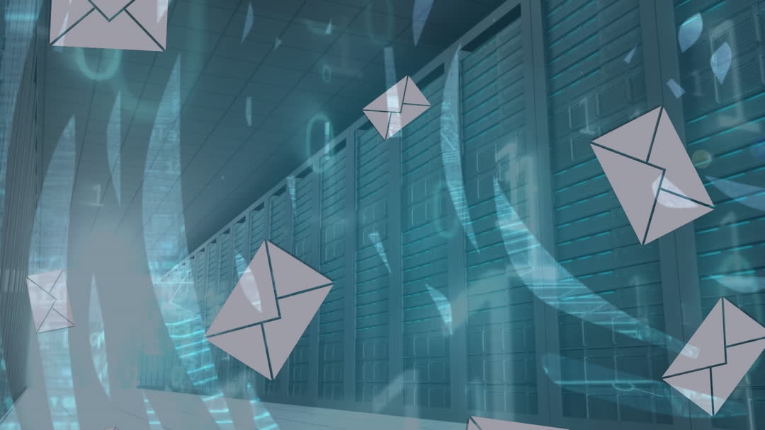 - Email Icons in High-Tech Server Room Background