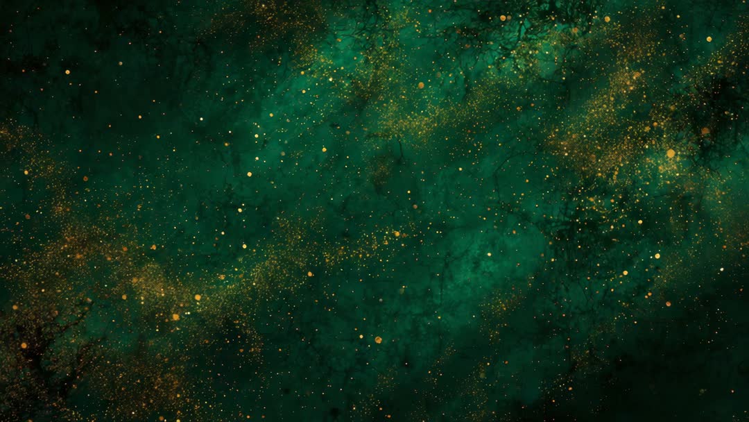 AI Generated Video. Visuals showing emerald green nebula clouds drifting across frame while golden specks and dust particles sparkling along faint dark filaments. Subtle camera shifting adding slow parallax movement, creating depth and cinematic mood. Suitable for sci-fi title sequences, music visualizers, livestream backgrounds, website hero headers, presentation backdrops, holiday greeting animations, meditation or relaxation videos. Works well as loopable background for branding, motion graphics, VJ sets, stage visuals. Teal and gold palette creating elegant luxurious tone. Recommend placing overlay text in center-left or center-right negative space for easy logo or title placement. Easy to color-grade and scale for different aspect ratios and resolutions. Ideal for commercial projects requiring mysterious cosmic atmosphere and premium visual texture.