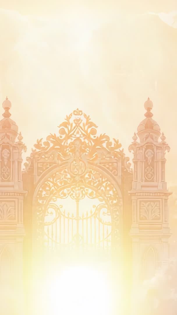 AI Generated Image. Featuring emerging golden orb casting warm, radiant rays through ornate filigree gate and twin pillars rising from soft clouds. Suiting spiritual, meditation, religious, fantasy, and luxury projects that require majestic, inspirational visuals. Serving as vertical video intro, title sequence, social media ad, app splash screen, motion background, or book trailer. Allowing overlay of logo, headline, or call to action within upper light area and along gate silhouette for easy text placement. Offering warm gold and pastel palette for seasonal campaigns, holiday greetings, or inspirational messaging. Supporting slow zoom, glow enhancement, and subtle particle animation to increase cinematic impact. Providing clear lower-area contrast for text or button placement while maintaining luminous focal point for dramatic reveal.