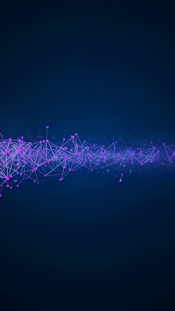 AI Generated Image. Vertical video showing emerging node cluster pulsing across deep blue void with neon purple connecting lines and drifting particle dust. Visual is focusing on flowing data pathways, dynamic node interactions, and rhythmic pulse motion ideal for looped playback. Use for tech presentation background, app intro, startup pitch opener, conference title sequence, social media vertical ad, mobile wallpaper, UI hero banner, and broadcast graphic. Suitable for projects about connectivity, AI, neural networks, data visualization, and futuristic design. Recommend using slow motion speed for dramatic effect or faster tempo for energetic tech promos. Color palette working well with white or light text overlays and minimal title cards. Rendering suggestions: seamless loop, high-contrast export, and optional particle density adjustment for different screen sizes.
