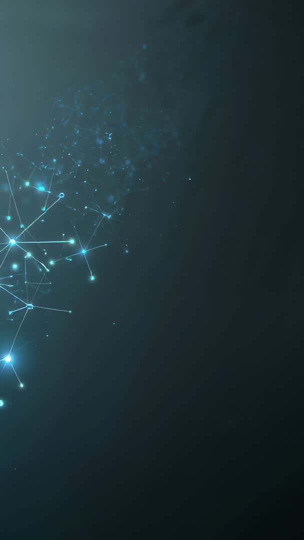 - Emerging nodes forming digital network of glowing connections and particles vertical video